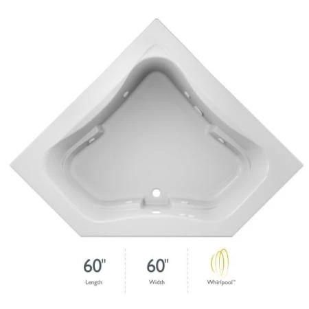 60″ x 60″ Signature® Corner Whirlpool Bathtub with 6 Jets, Air Controls, Center Drain and Right PumpJacuzzi® J5D6060 WCR 1XX Features: